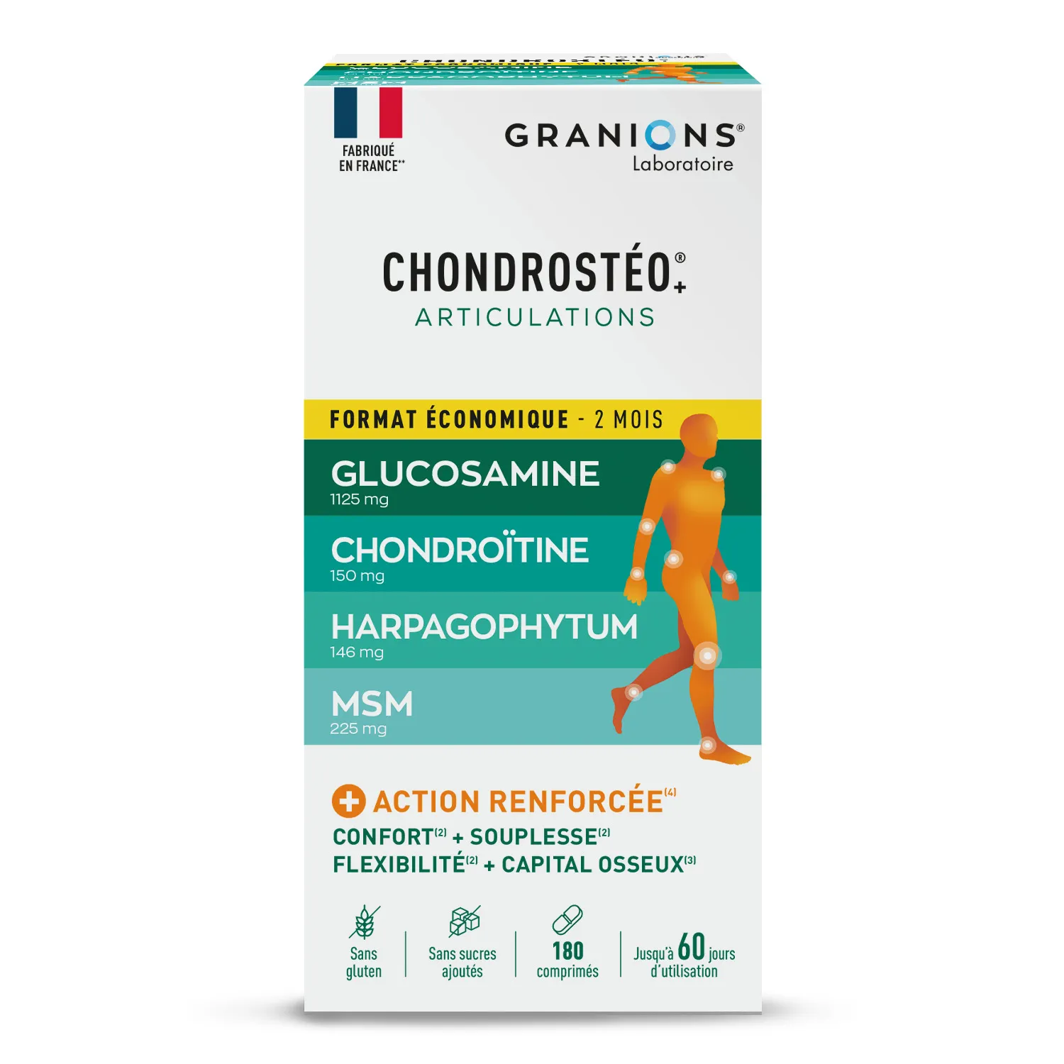 - Complement alimentaire dédié aux articulations, CHONDROSTEO ARTICULATIONS est une formule triple action, destinée aux épisodes d’inconforts légers à modérés récurrents