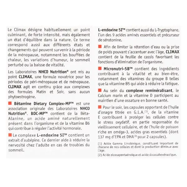 NHCO Nutrition® Laboratories have developed CLIMAX, an innovative formula for the peri-menopausal and menopausal periods.
