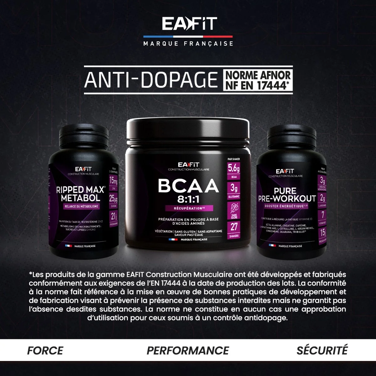 EAFIT Tribulus est spécialement formulé pour soutenir la synthèse naturelle de la testostérone, un élément clé dans la prise de muscle, l’amélioration des performances et la vitalité. Enrichi en Tribulus Terrestris, reconnu pour ses effets sur l’augmentation du taux de testostérone, ce complément est idéal pour les sportifs cherchant à maximiser leurs résultats.