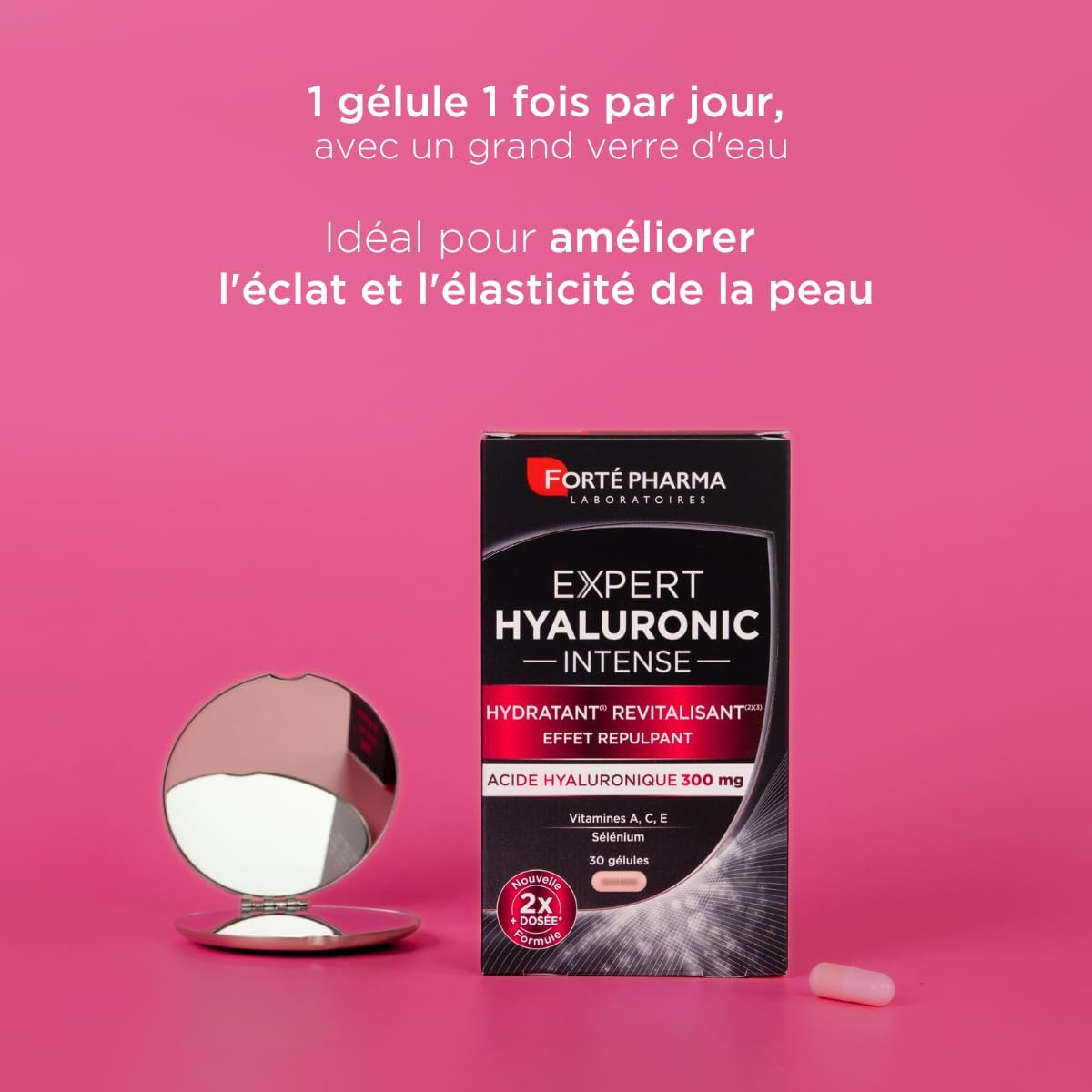Expert Hyaluronique Intense contient 300mg d’Acide Hyaluronique, il est 2 fois plus dosé en acide hyaluronique que notre ancienne formule !