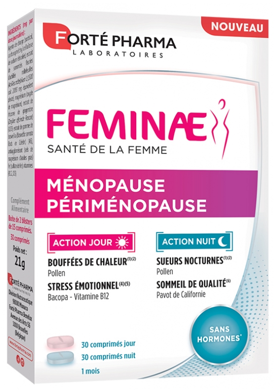 Sans aucune source d’hormones de synthèse ni de phytooestrogènes*, FEMINÆ Ménopause Périménopause a été spécialement élaboré pour vous aider à atténuer les désagréments de la ménopause, le jour comme la nuit et vivre plus sereinement votre ménopause.
