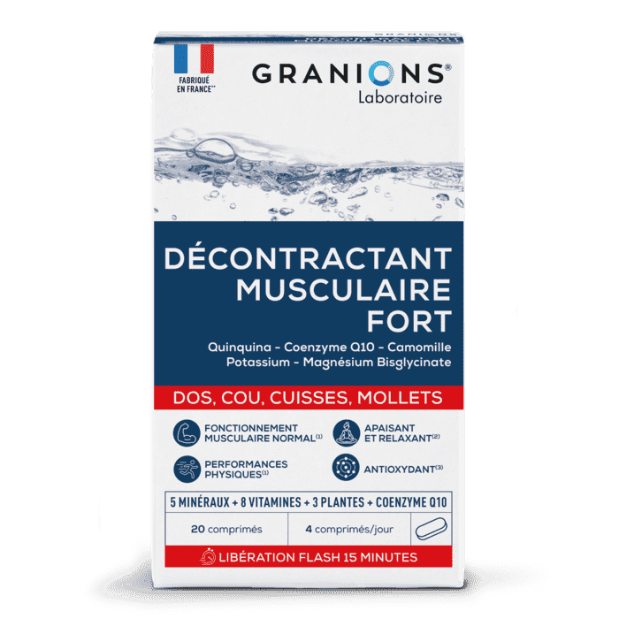 Le Laboratoire des GRANIONS propose un complexe unique de 17 actifs pour prévenir les contractures musculaires, apaiser et réduire la fatigue des muscles, et favoriser leur bon fonctionnement. Ce produit a été formulé pour une libération flash des actifs en 15 minutes.
