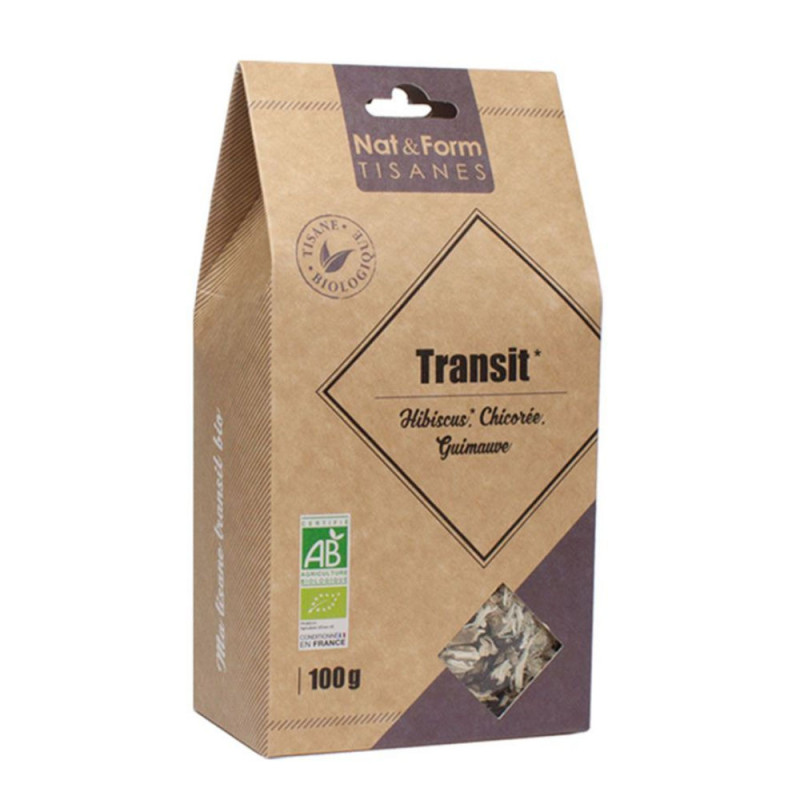 Nat&Form tisane biologique Transit est un complément alimentaire à base d’Hibiscus, de Chicorée et de Guimauve, qui aide à maintenir un transit régulier.